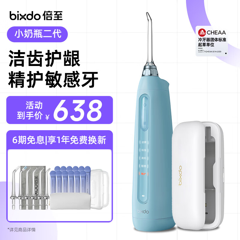倍至(bixdo)冲牙器 小奶瓶青山蓝+杀菌盒 P52&U50套装男女朋友礼物价格:638.00元!