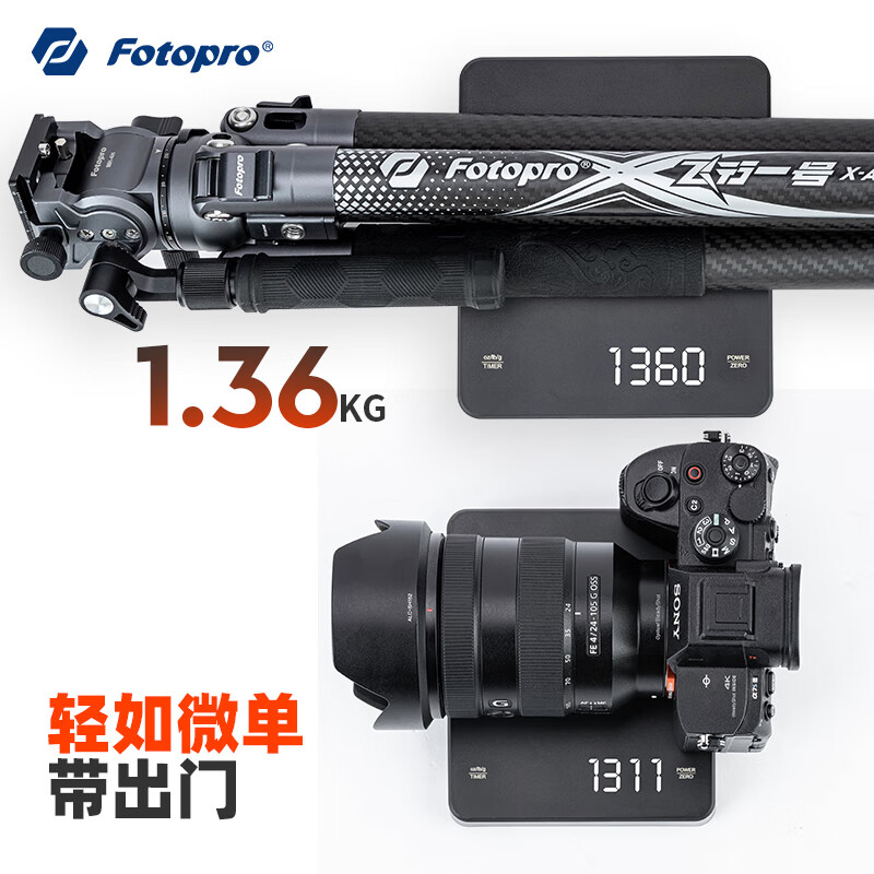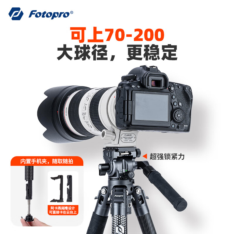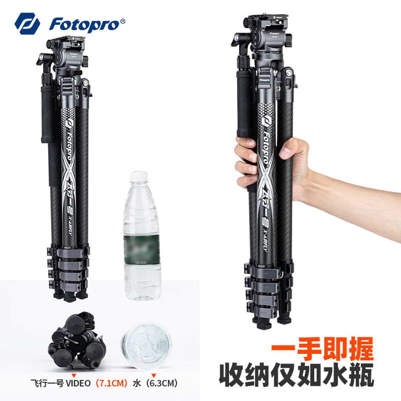 富图宝(Fotopro)飞行一号 VIDEO 液压球形一体云台相机微单摄影摄像无中轴扳扣碳纤维三脚架 原碳灰 含手机夹价格:1349.00元!