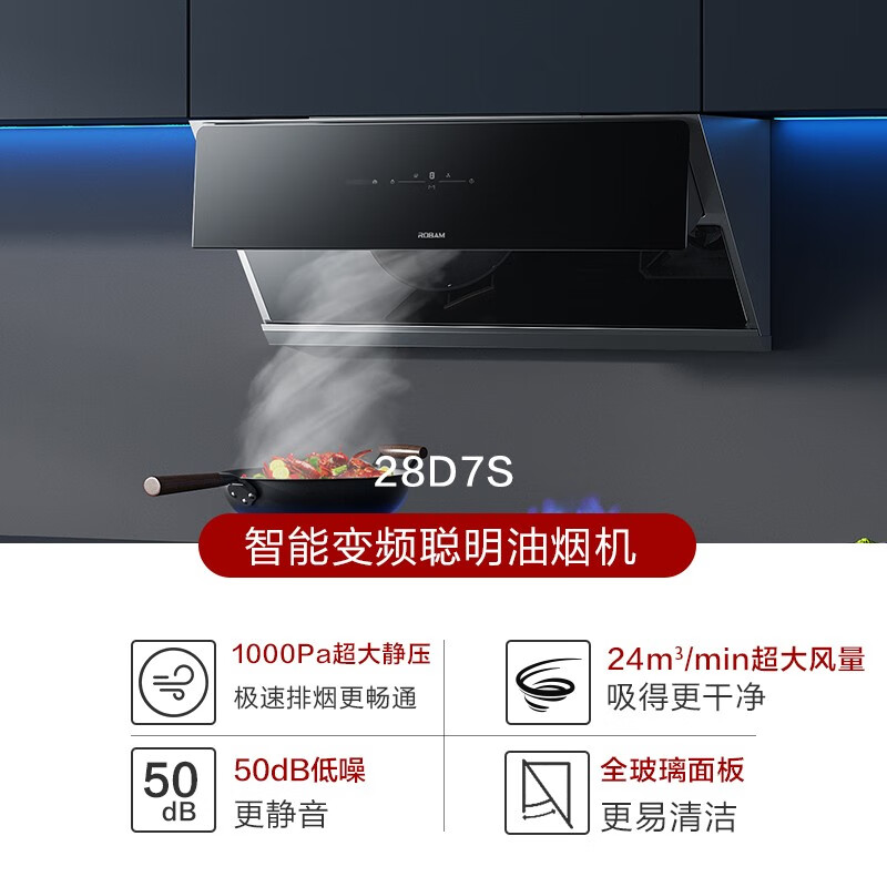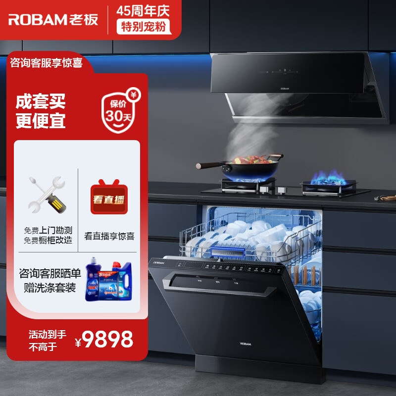 老板(Robam)探索家D7S变频 24大风量侧吸抽油烟机15套洗碗机嵌入式独立式两用厨房多件套28D7S+57B6DT+F80D黑价格:9898.00元!