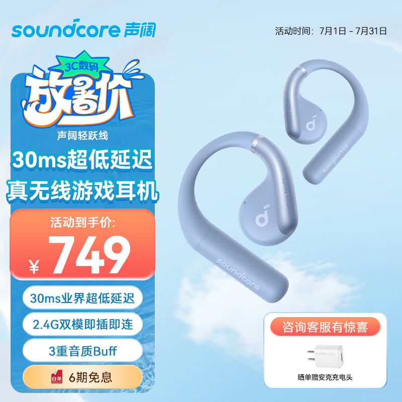 声阔轻跃线云感不入耳蓝牙耳机AeroFit开放舒适佩戴42H续航无线办公运动跑步适用苹果华为手机蓝价格:748.00元!