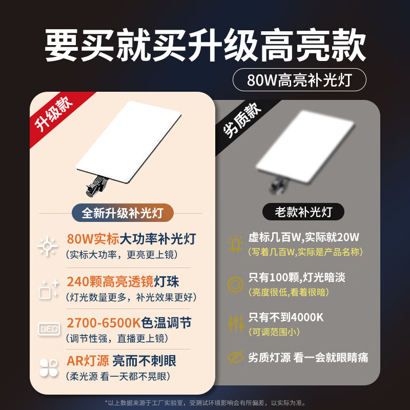 科润乐【80W高亮灯】直播补光灯平板摄影拍摄打光led拍照主播直播间专业美食灯光柔光美颜视频桌面影棚价格:188.00元!