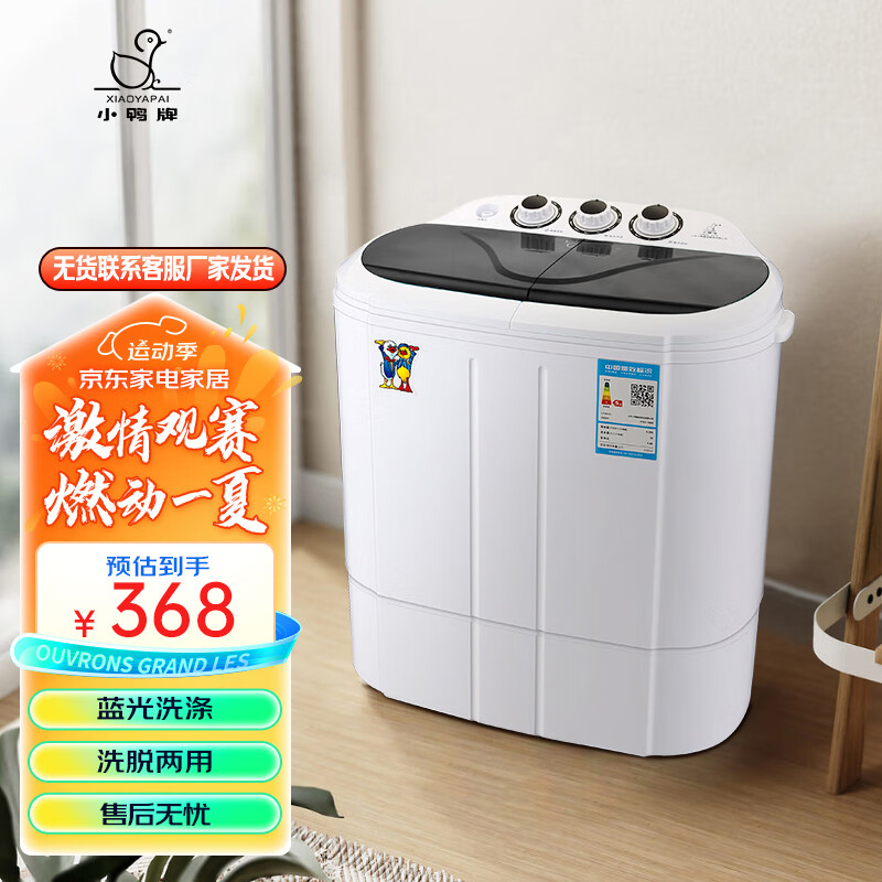 小鸭2.5公斤双缸小型半自动迷你洗衣机 婴儿小洗衣机 内衣裤洗衣机小型 蓝光款 XPB25-1680S价格:349.00元!