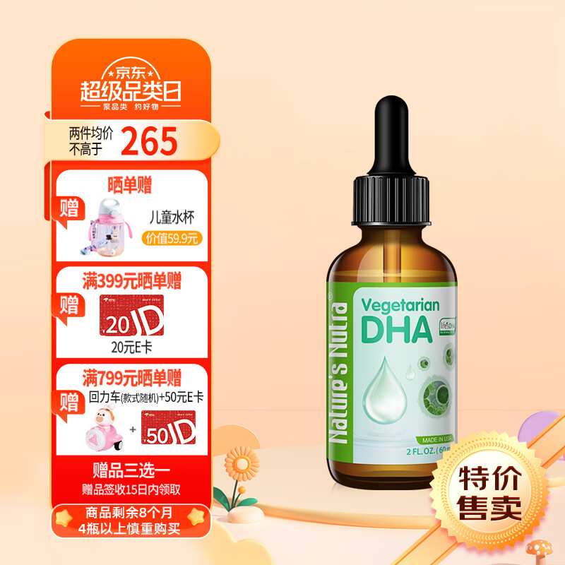 莱思纽卡 Nature's Nutra美国进口宝宝DHA藻油孕妇儿童哺乳期dha饮液滴剂60ml价格:338.00元!