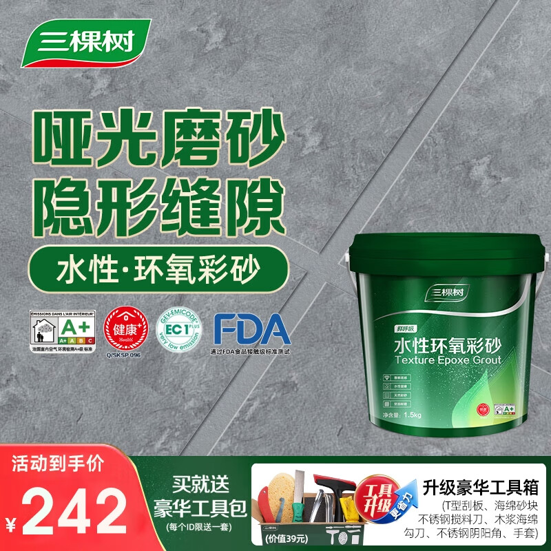 三棵树漆(SKSHU)水性环氧彩砂桶装美缝剂耐磨耐水客厅厨卫地砖瓷砖胶 浅灰色价格:242.00元!