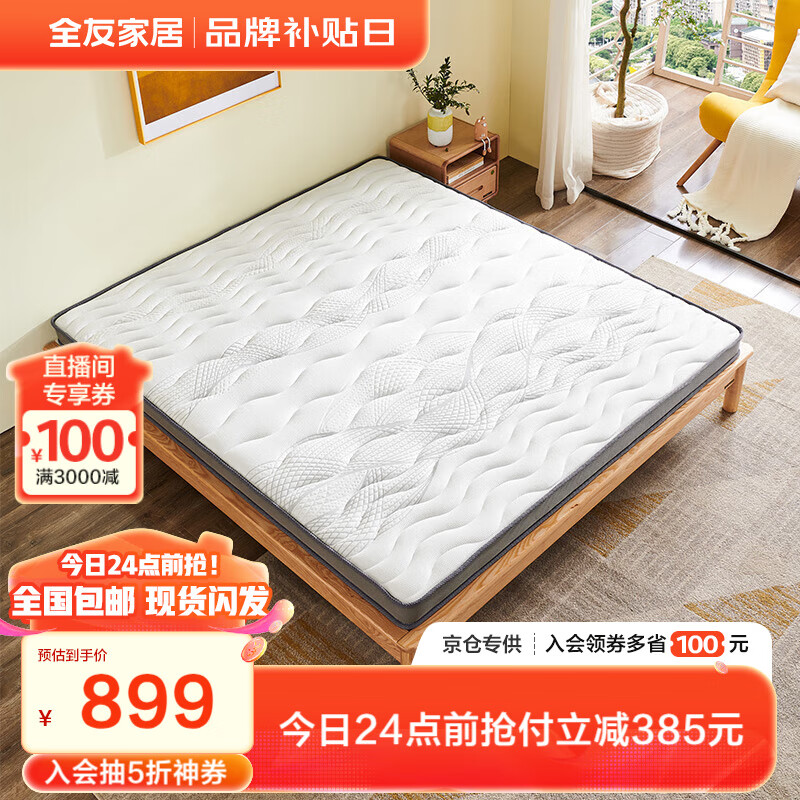 全友家居 天然环保椰棕床垫1.5x2米薄款偏硬榻榻米床垫子10cm厚105189价格:1284.29元!