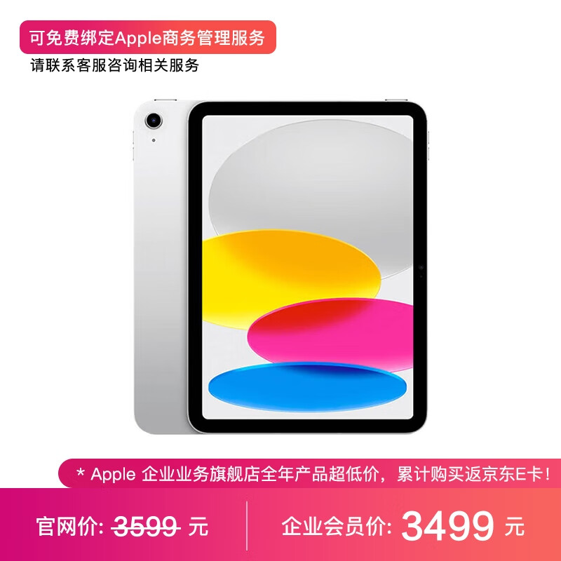 Apple iPad 10.9英寸平板电脑 2022年款(64GB WLAN版/A14芯片/1200万像素/iPadOS MPQ03CH/A)银色*企业专享价格:3599.00元!