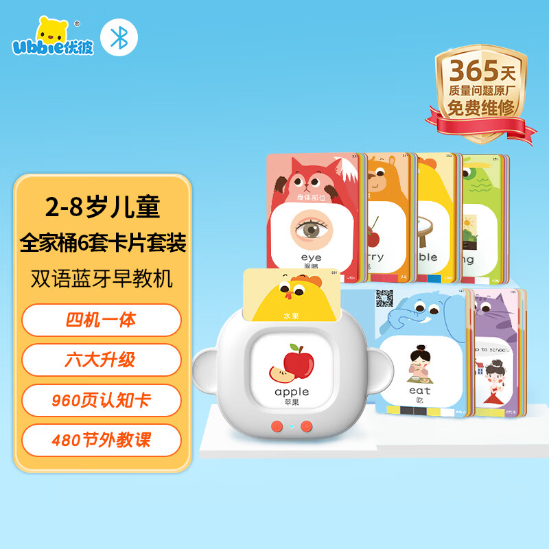 优彼双语启蒙蓝牙早教卡片机儿童益智玩具英语早教机儿童节日礼物男女价格:218.00元!