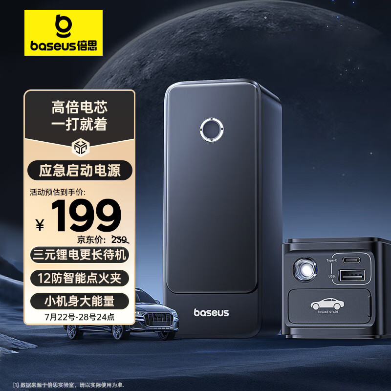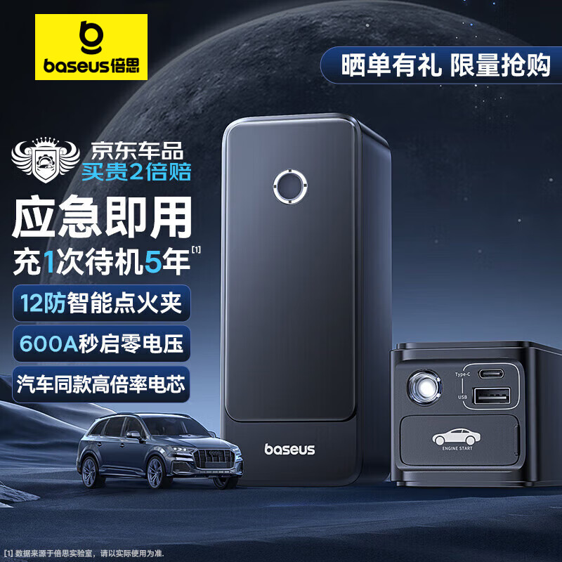 倍思(baseus)汽车应急启动电源 搭电宝汽车用电瓶 户外电源充电宝应急充电器价格:318.00元!