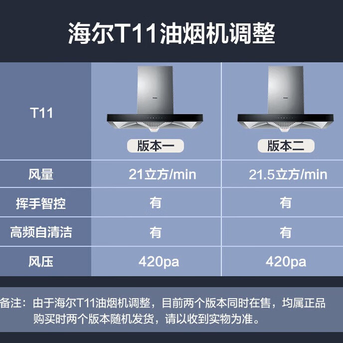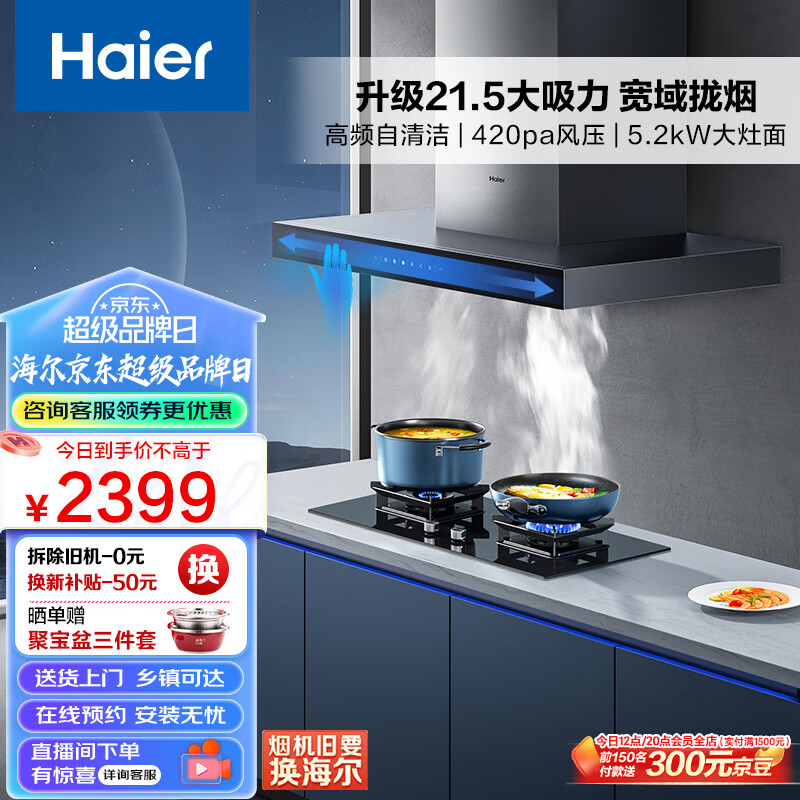 海尔(Haier)抽油烟机 顶吸式吸排烟机 升级21.5m3/min大吸力 自清洁挥手智控 家用脱排油烟机T11+Q7BE3天价格:2399.00元!