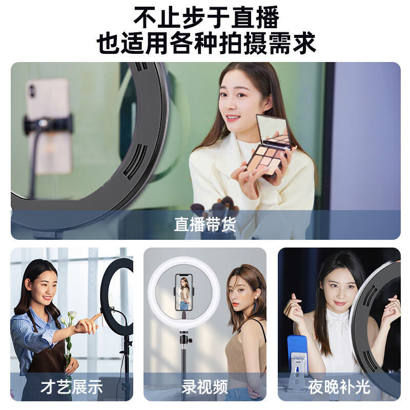 徕兹 环形补光灯led直播补光灯美颜嫩肤瘦脸大光圈柔光灯网红主播短视频拍摄户外手机直播自拍打光灯价格:108.00元!