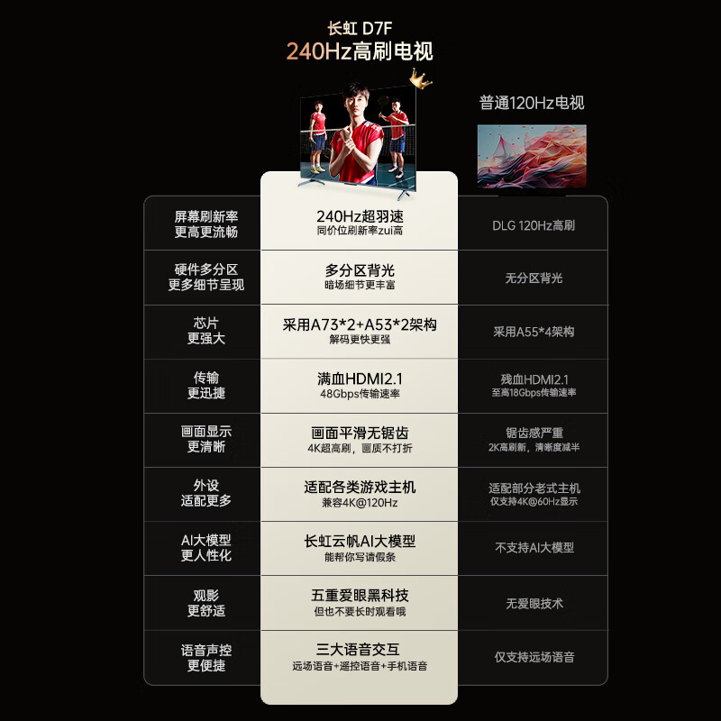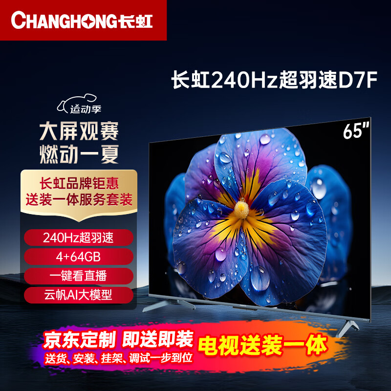 长虹电视65D7F 【包安装】65英寸4K超高清游戏电视 240Hz超羽速 4+64GB 一键看电视 智能平板液晶电视价格:3438.00元!