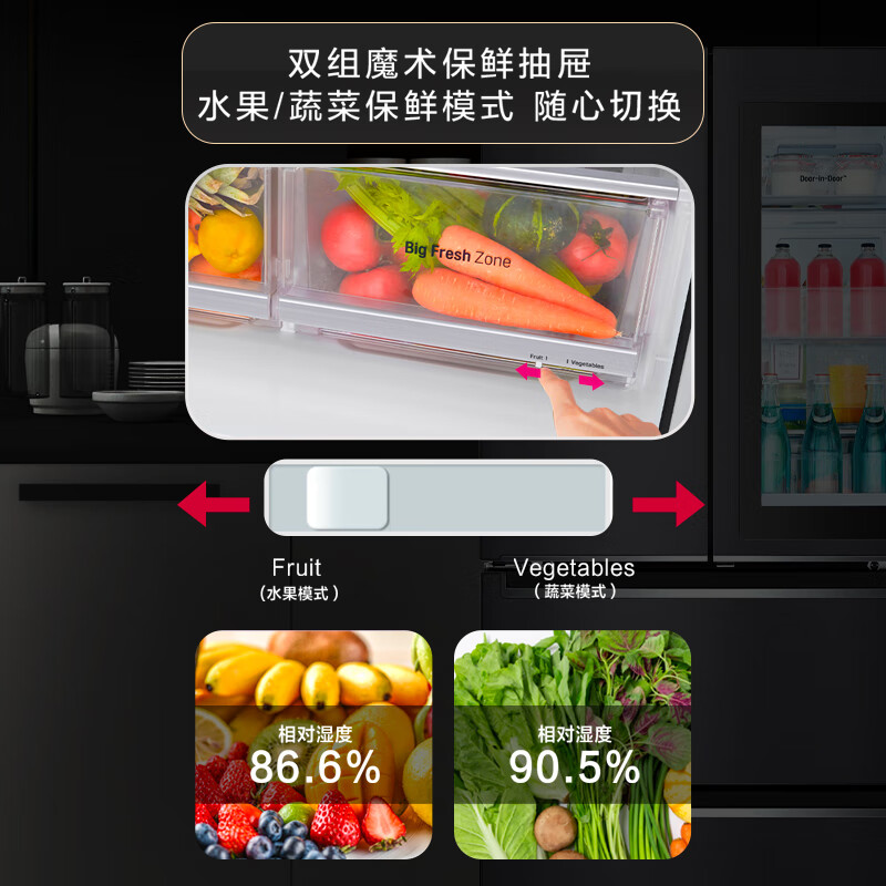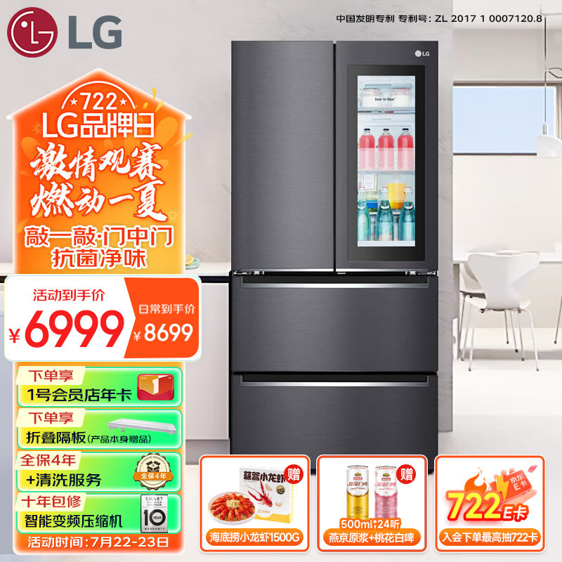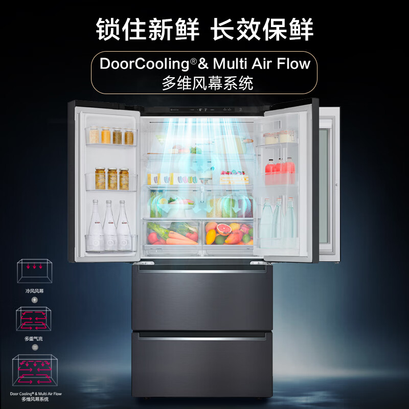 LG敲一敲 门中门系列 法式多门冰箱 541升大容量家用电冰箱 变频风冷无霜抗菌净味冰箱 F532MMC78B黑价格:6999.00元!