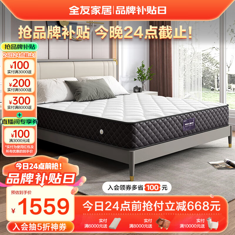 全友家居 床垫卧室弹簧床垫防螨椰丝棉双面可用单双人床垫105265Ⅰ价格:2227.14元!