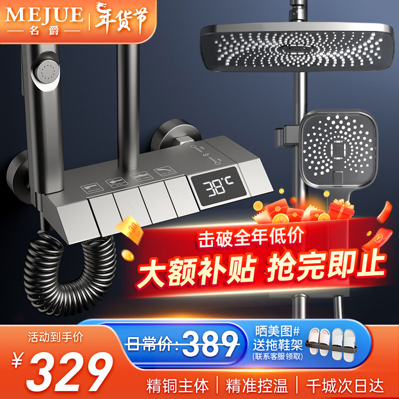 名爵(MEJUE)智能淋浴花洒套装花洒全套卫浴喷头增压花酒加压淋雨器套装05105价格:389.00元!