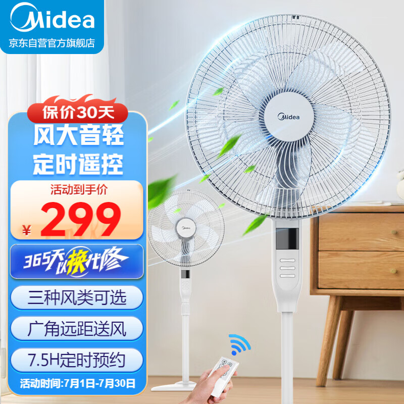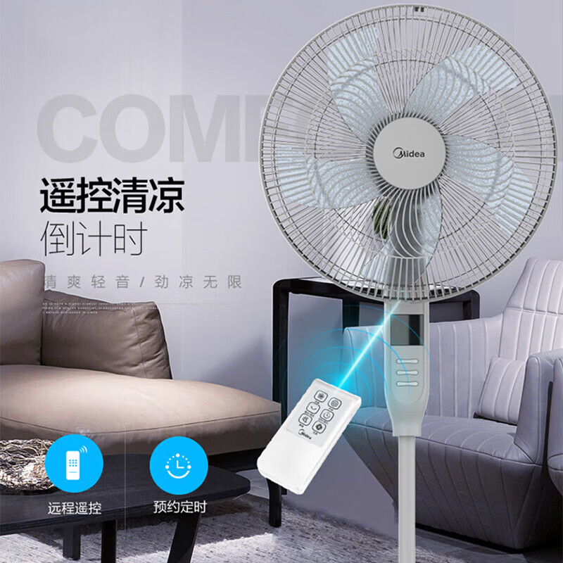 美的(Midea)电风扇 家用七叶遥控定时大风力落地扇宿舍卧室低噪轻音台式桌面小风扇节能立式摇头空气循环电扇 FSA40XDR【五叶遥控款】价格:399.00元!