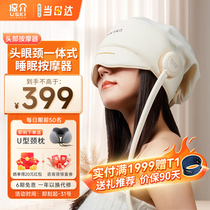 凉介USKI头部按摩器 R1头眼颈一体式睡眠仪 眼部按摩仪热敷眼罩 实用生日礼物 节日礼品 杏色价格:449.00元!