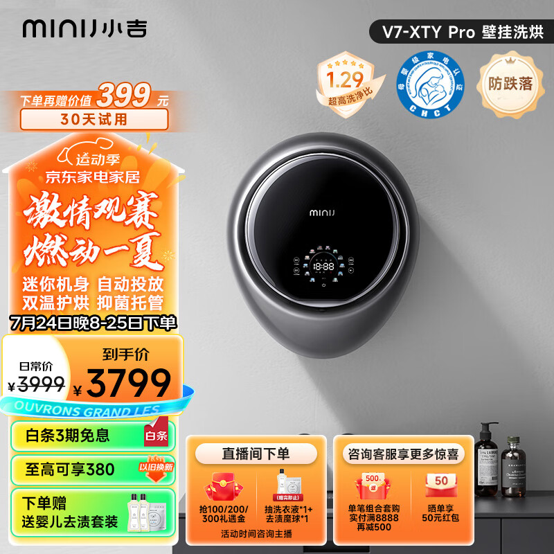 小吉(MINIJ)智控壁挂洗烘一体洗衣机 APP操控全自动智能变频 1kg迷你母婴洗衣机 小水滴 V7-XTY pro价格:3999.00元!