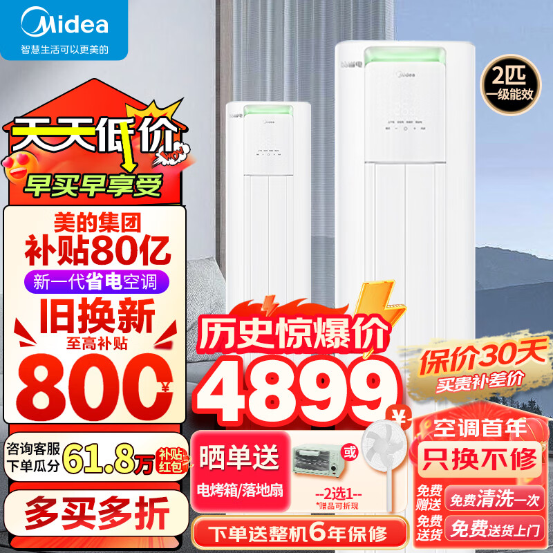美的(Midea)空调2匹酷省电柜机新一级能效全直流变频冷暖空调立式客厅空调柜机节能省电 KFR-51LW/N8KS1-1P价格:4899.00元!