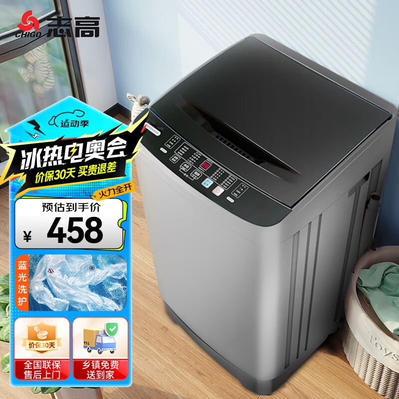 志高(Chigo)6.5公斤家用全自动洗衣机蓝光洗护租房公寓智能波轮洗脱一体机带风干功能XQB65-818A宝石灰价格:468.00元!