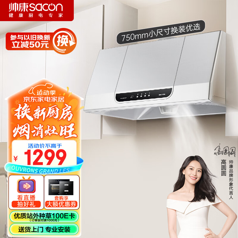 帅康(Sacon)抽油烟机 大风量脱排油烟机 家用中式吸油烟机 小尺寸换装优选 免拆洗 易操作CXW-200-MD01价格:1299.00元!