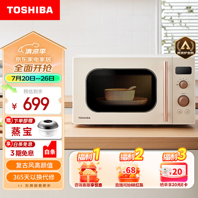 东芝 TOSHIBA ER-VS2200微波炉家用小型迷你复古转盘加热式微波杀菌 网红菜单高颜值 20L价格:699.00元!