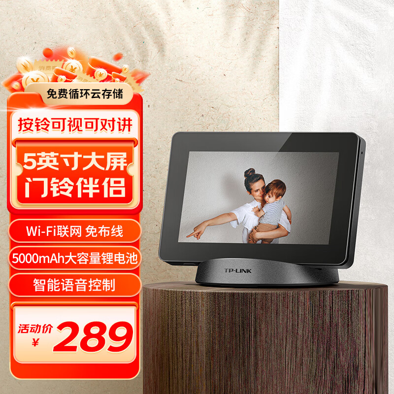 TP-link 门铃伴侣无线wifi可视对讲主机 5英寸高清监控显示大屏 搭配智能门铃电子猫眼安防摄像头 TL-DP2价格:289.00元!