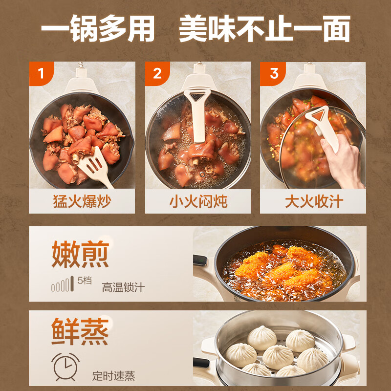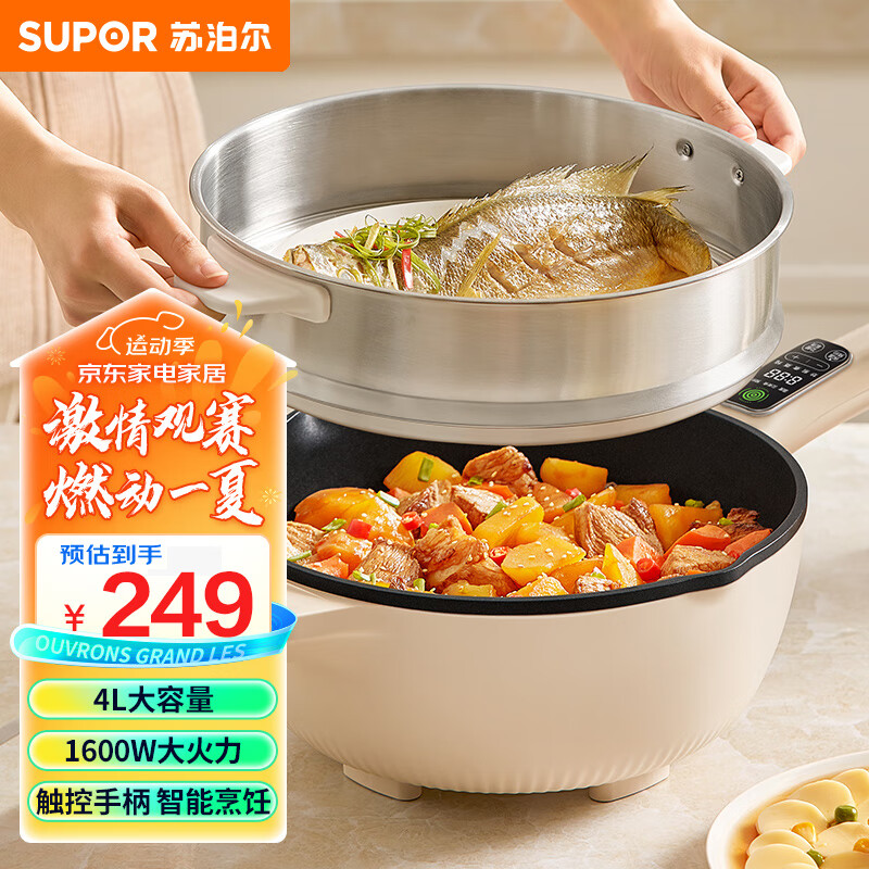 苏泊尔(SUPOR)电炒锅 电蒸锅 电煮锅 家用多功能电火锅 蒸煮炒菜 4升多用途锅 CD28A823配蒸屉价格:249.00元!
