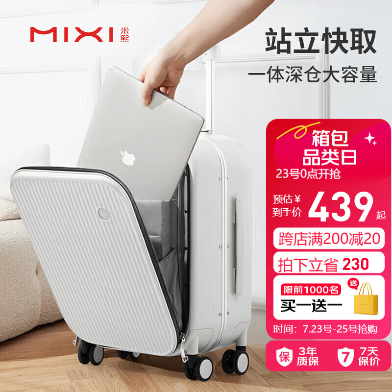 米熙前开盖铝框箱包拉杆箱子密码箱行李箱大容量旅行箱男20英寸烟白70价格:669.00元!