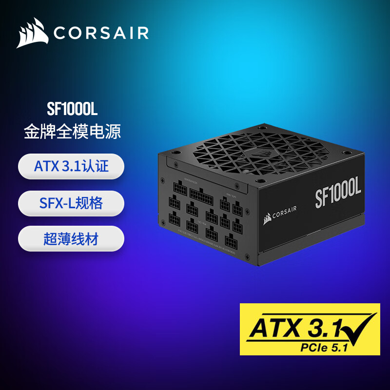 美商海盗船(USCORSAIR)SF1000L 1000W电源 RPS0156 ATX 3.1认证/支持4090/PCle5.1/16Pin供电/模金牌价格:1399.00元!