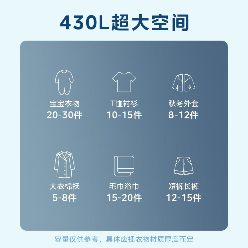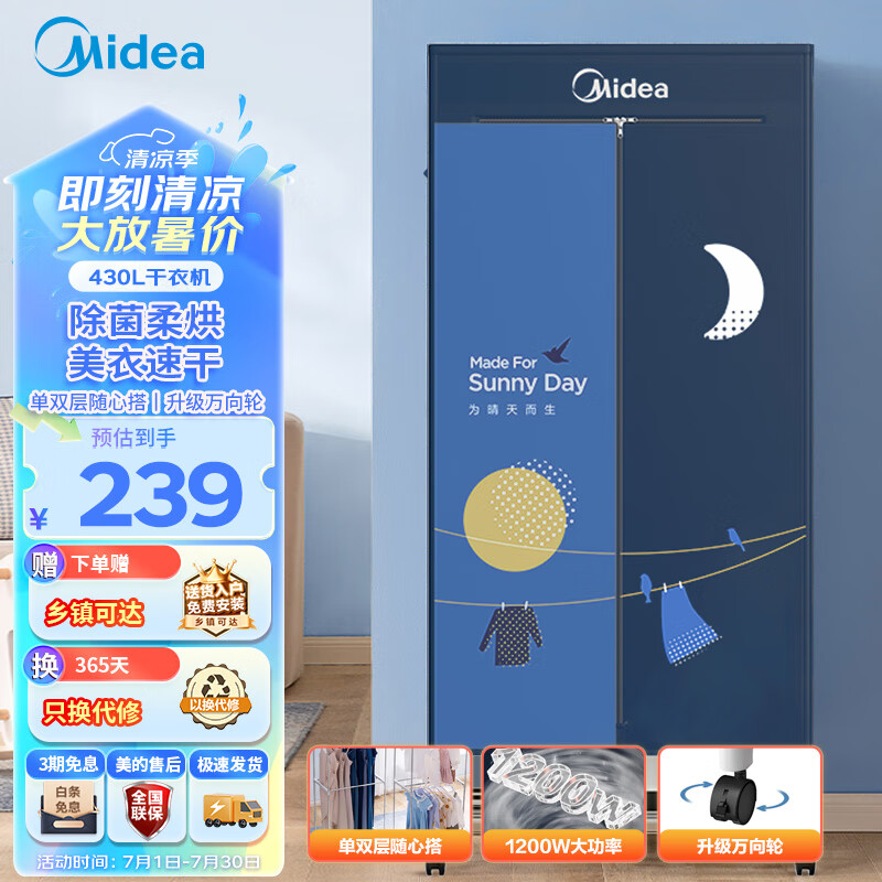 美的(Midea)烘干机家用 衣服干衣机婴儿衣物烘干机430L大容量风干机定时烘干衣柜小型衣物护理柜万向轮JQ3价格:239.00元!