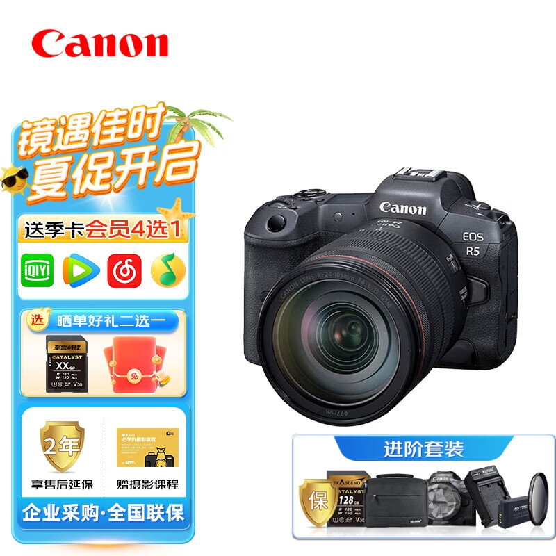 佳能(Canon)EOS R5 24-105 USM镜头套机 扫街旅拍套装价格:33499.00元!
