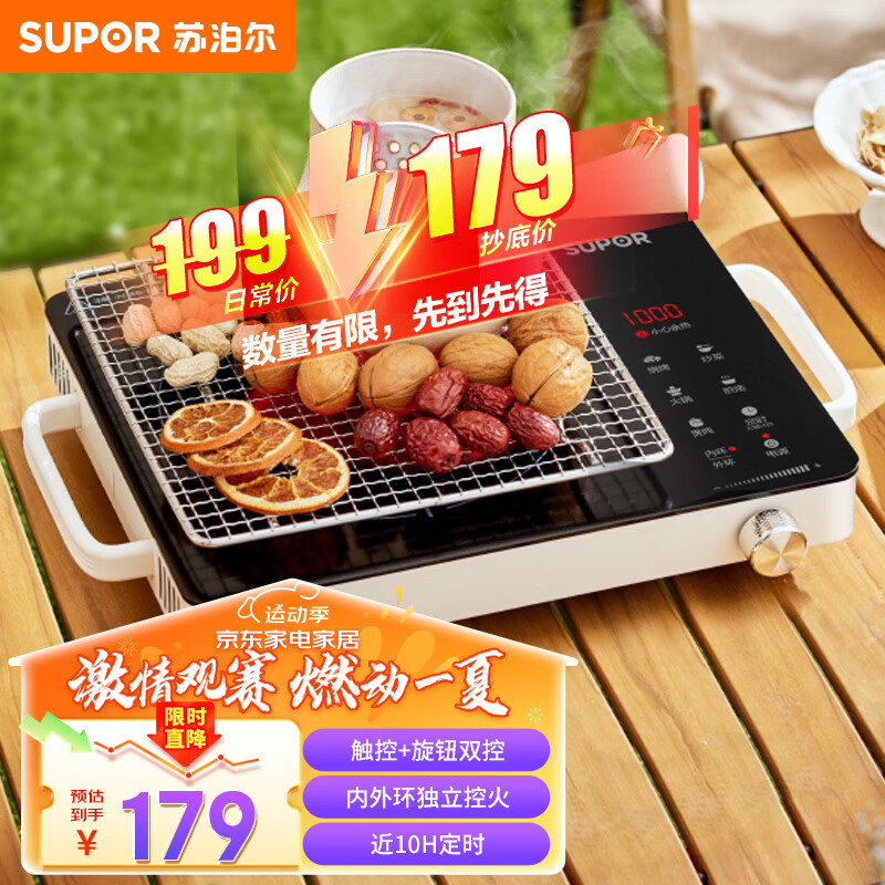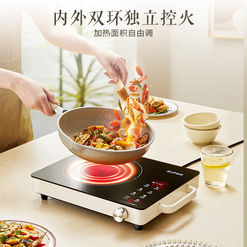 苏泊尔(SUPOR)家用电陶炉电磁炉不挑锅具智能双环控温煮茶炉2200W大功率火锅炉电池炉爆炒炒菜围炉煮茶C22-CS08价格:179.00元!