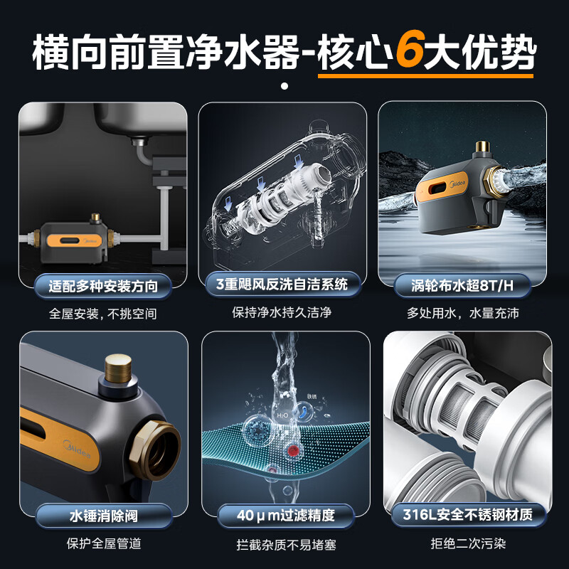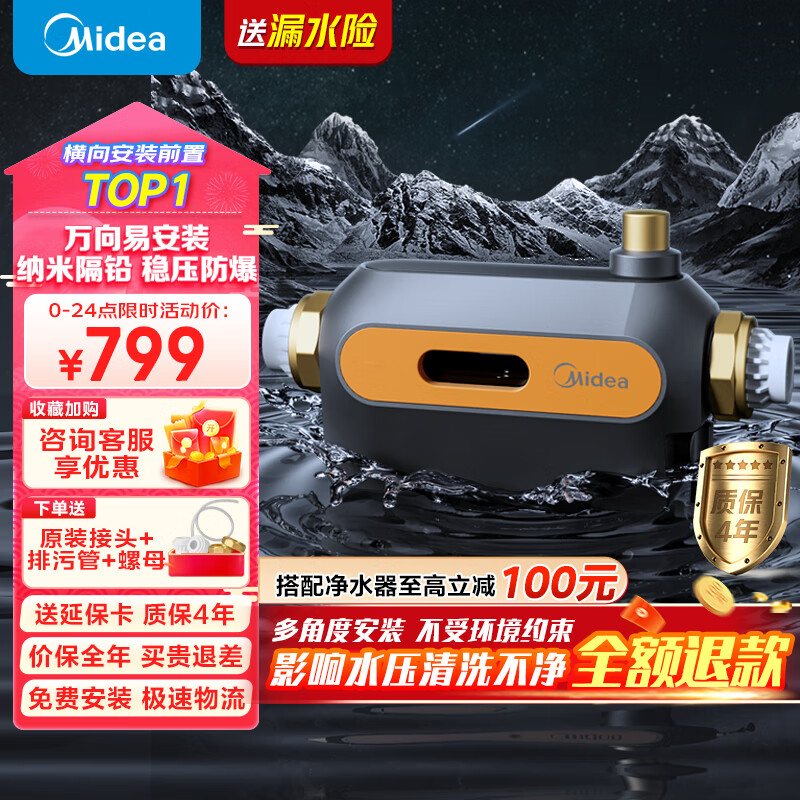 美的(Midea)万向安装款前置过滤器 自动反冲洗 超8T/h大流量 免换滤芯自来水过滤器 全屋净水器QZBW20S-50价格:799.00元!