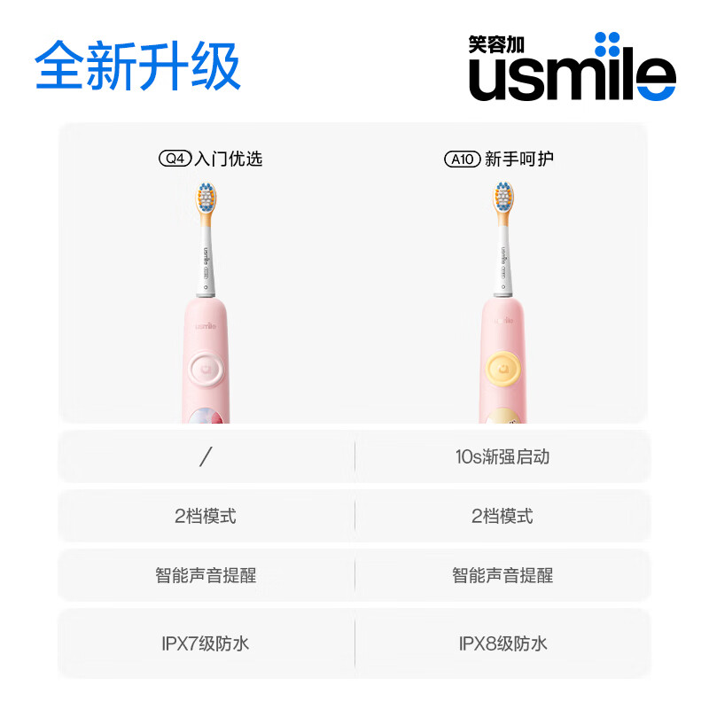 usmile笑容加 儿童电动牙刷 声波震动 180天续航 小公主粉 3-6-12岁儿童礼物价格:179.00元!