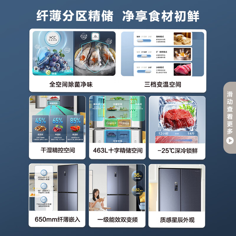 海信(Hisense)四开门冰箱十字门 463升超薄无霜冰箱一级能效大容量双变频BCD-463WMK1DPJ-冷藏冷冻除菌净味价格:2199.00元!