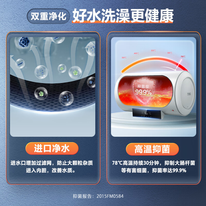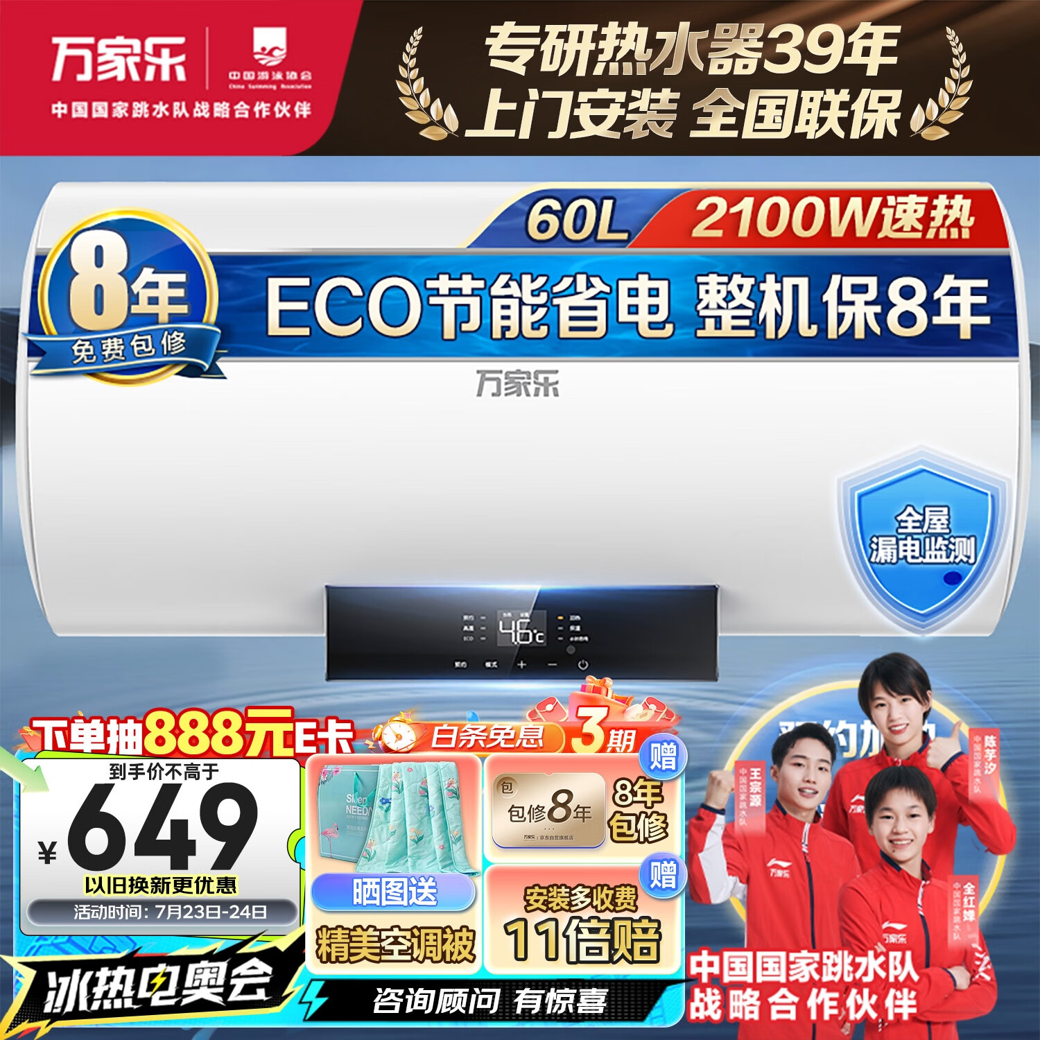万家乐60升电热水器 家用储水式2100W速热 一键恒温节能 长效镁棒 卫生间洗澡 预约加热D60-CY3价格:649.00元!
