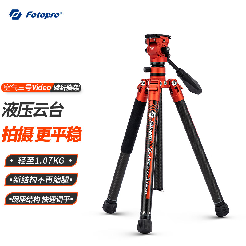 富图宝 Fotopro 空气三号 Video液压小云台便携反折碳纤维相机微单摄影摄像三脚架 火焰橙 含手机夹价格:999.00元!