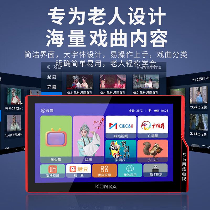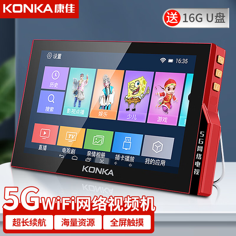 康佳(KONKA) V077S老人电视机WiFi看戏机老年人听戏机广场舞视频机音响带显示屏音箱收音机移动网络触屏小电视价格:439.00元!