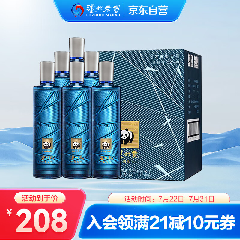 泸州老窖泸州贡泊心浓香纯粮食白酒52度500ml*6瓶自饮送礼(含礼袋)价格:208.00元!
