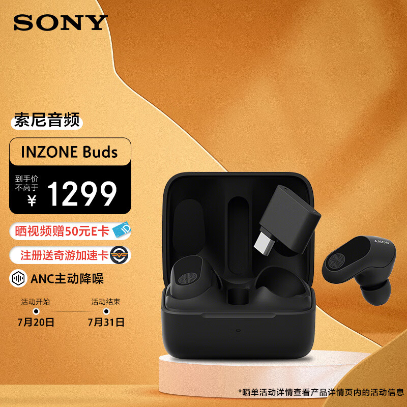 索尼(SONY)INZONE Buds 游戏豆 真无线主动降噪 电竞游戏耳机 2.4GHz Type-C 低延迟 虚拟7.1 PS5适配 黑色价格:1299.00元!
