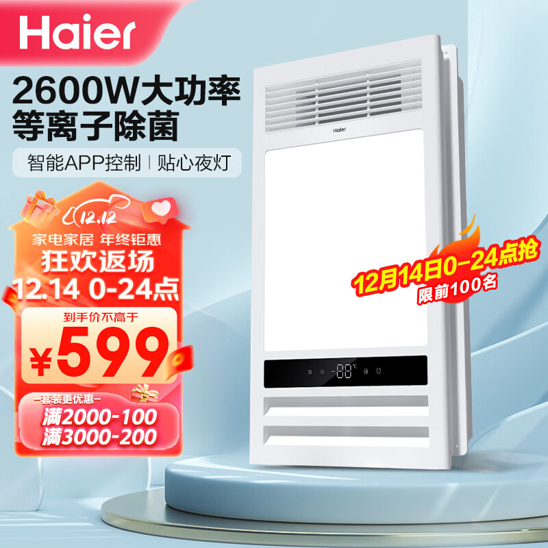 海尔A5U1 智能风暖浴霸大功率双电机无线开关 卫生间浴霸灯浴室暖风机价格:649.00元!