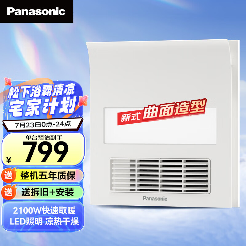 松下(Panasonic)浴霸FV-RB20ZL1风暖浴霸吊顶换气浴室暖风卫生间 小白弧照明浴霸 价格:899.00元!