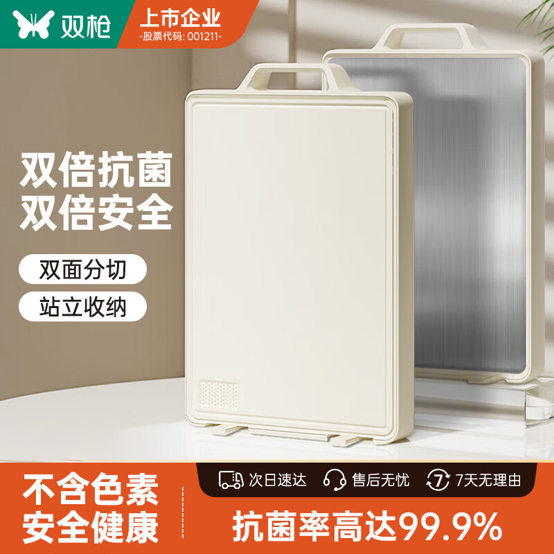 双枪(Suncha)菜板抗菌不锈钢双面砧板切菜板砧板加厚案板防霉厨房切菜剁骨菜板价格:119.90元!