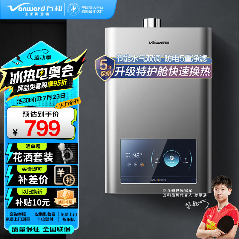 万和(Vanward)燃气热水器13升天然气水气双调恒温ECO节能5重净滤双防电保护防冻 E2D13【升级特护舱】以旧换新价格:779.00元!