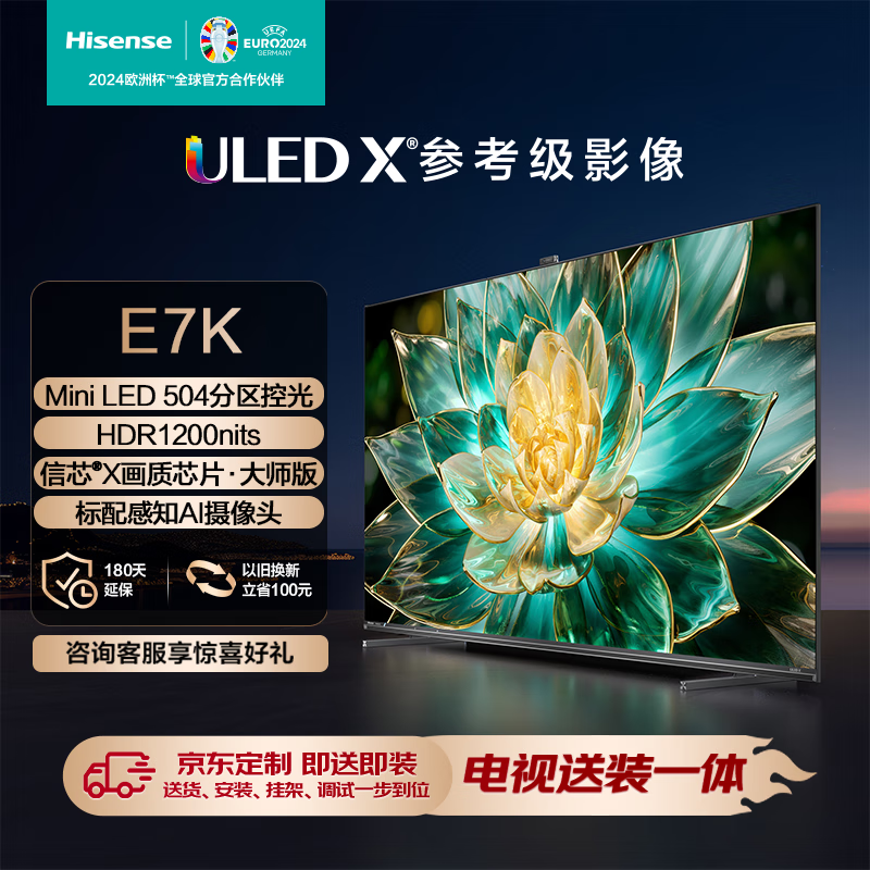 海信电视75E7K 【送装一体版】 75英寸ULED X Mini LED AI摄像头超感知 液晶智能平板电视机价格:6398.00元!