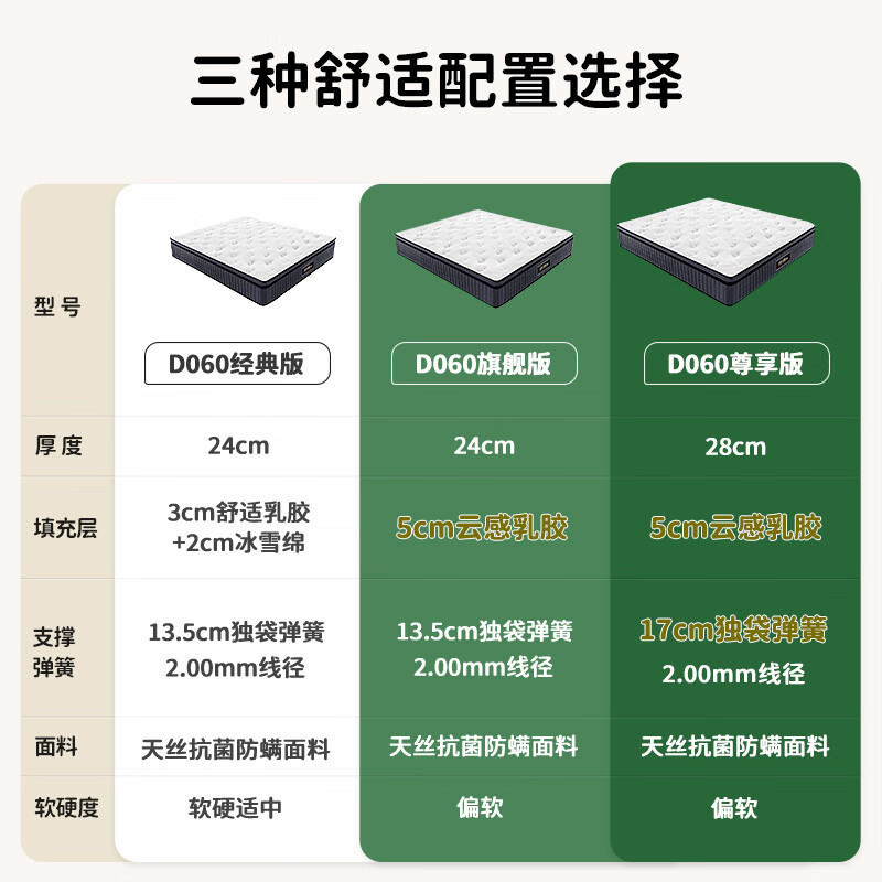 此款芝华仕床垫D060的网友有不少,这回就给大家介绍一下,这个新出来的,很受欢迎,这个商品真的很实用,解决了很多实际问题,省去了不少麻烦。