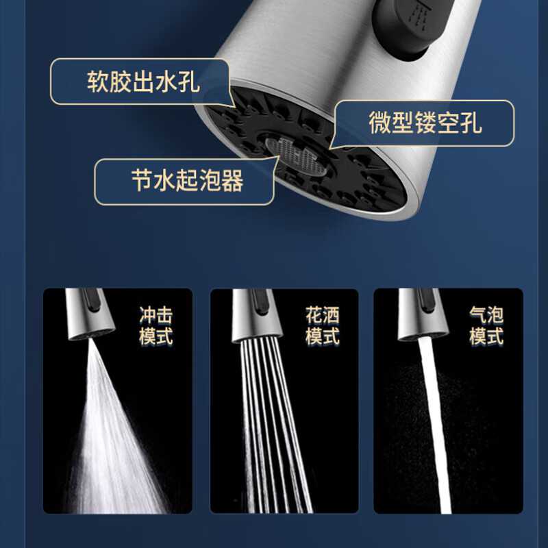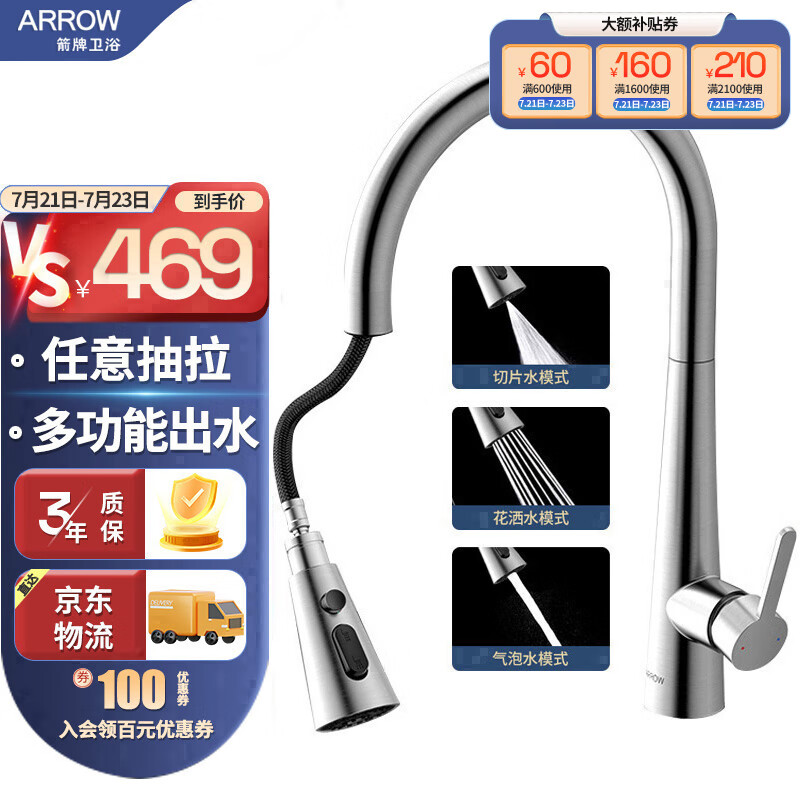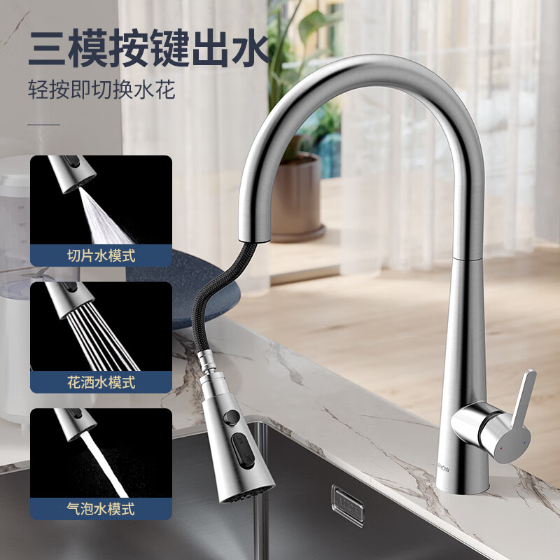 箭牌(ARROW)厨房水龙头冷热抽拉式水龙头 厨房龙头三功能出水AE45140MSS价格:469.00元!