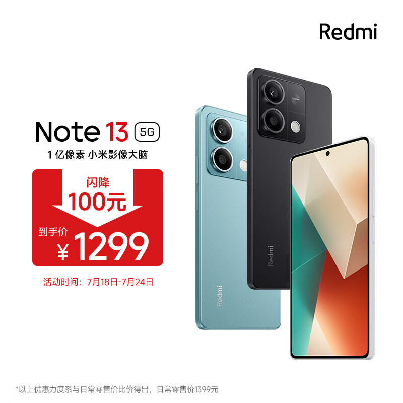 小米Redmi Note13 5G 1亿像素 超细四窄边OLED直屏 12GB+256GB 时光蓝 SU7 5G手机价格:1299.00元!
