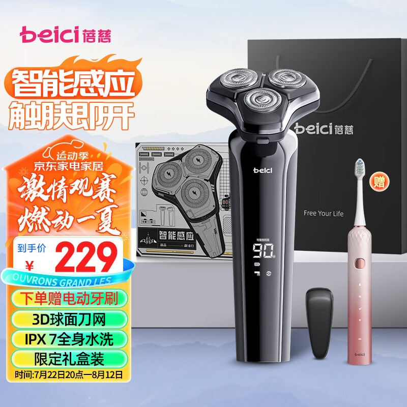 蓓慈(beici)X5剃须刀电动刮胡刀自动胡须刀旋转式男生智能感应触肤即开礼盒七夕情人节礼物价格:279.00元!