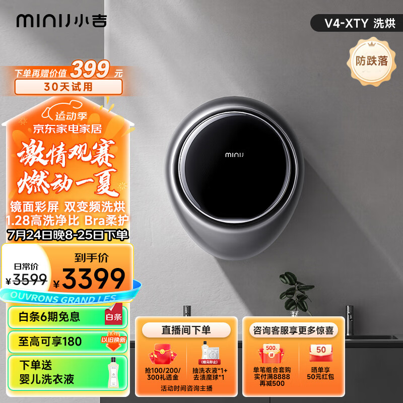 小吉(MINIJ)彩膜智慧大屏壁挂 迷你滚筒洗烘一体洗衣机全自动 DD直驱变频 专属母婴洗衣机 V4-XTY价格:3599.00元!